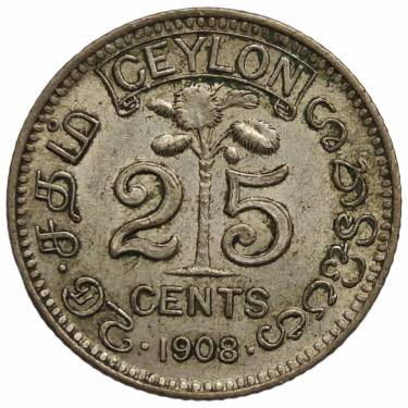 Ceilonas 25 centai 1908