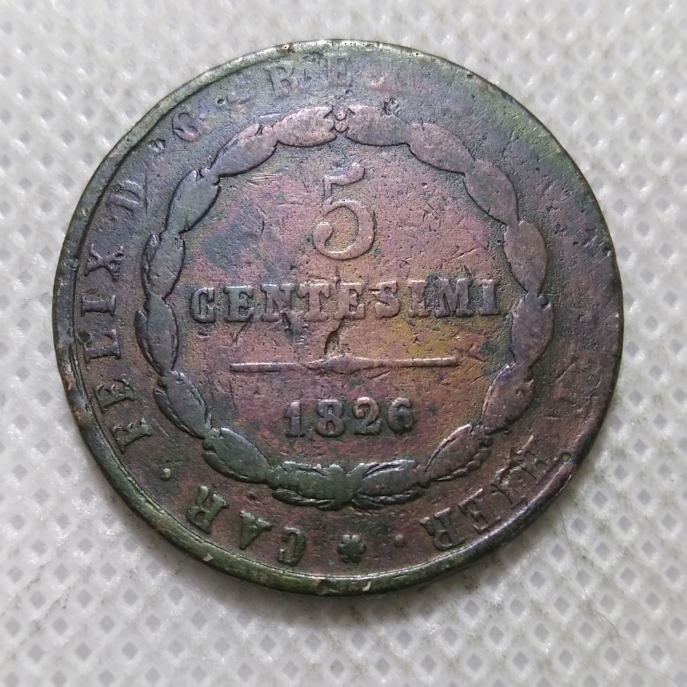 Sardinija 5 čentezimai 1826