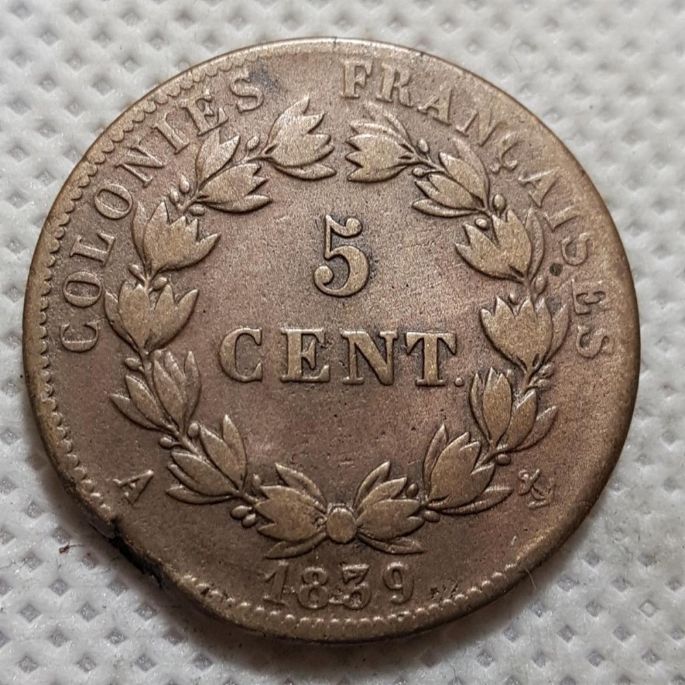 Prancūzų kolonijos 5 santimai 1839