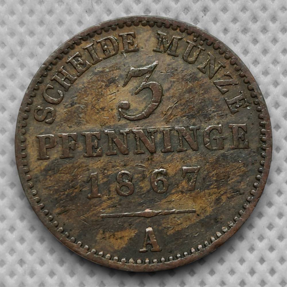 Prūsija 3 pfenigai 1867A