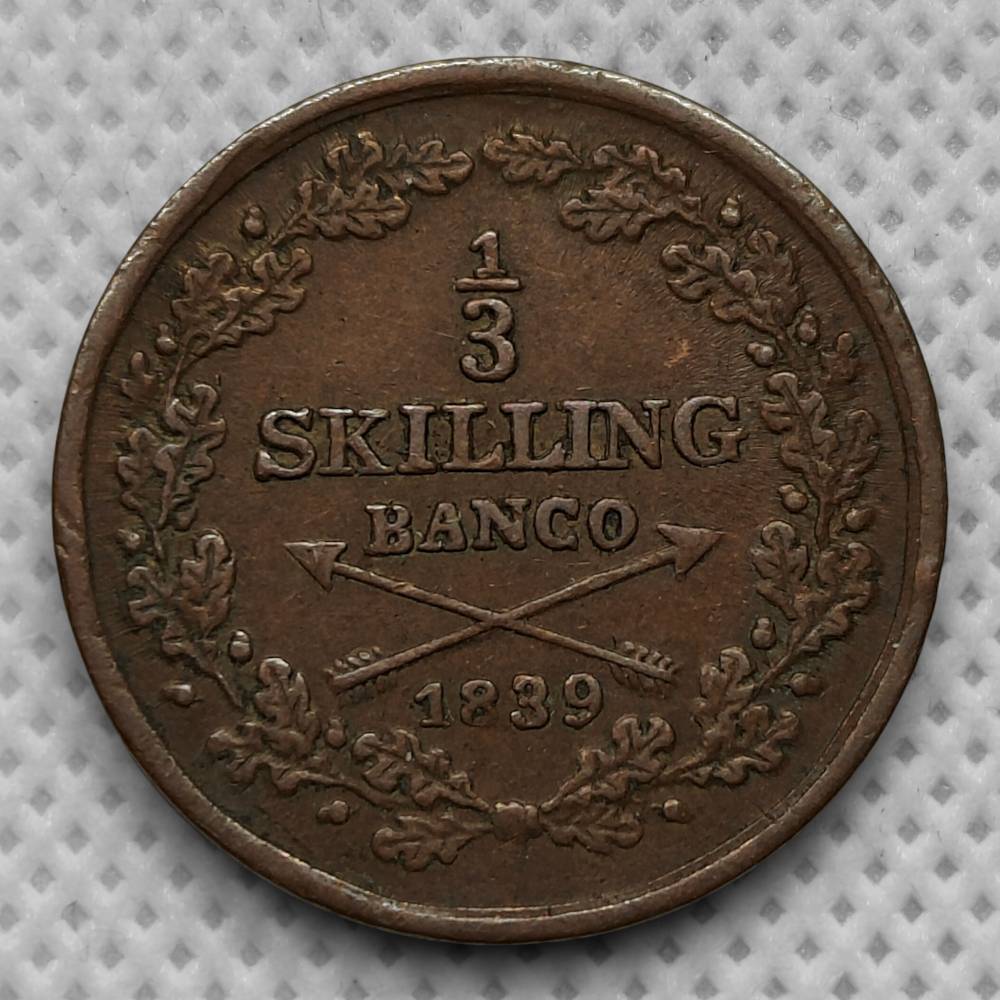 Švedija ⅓ skilingo banco 1839