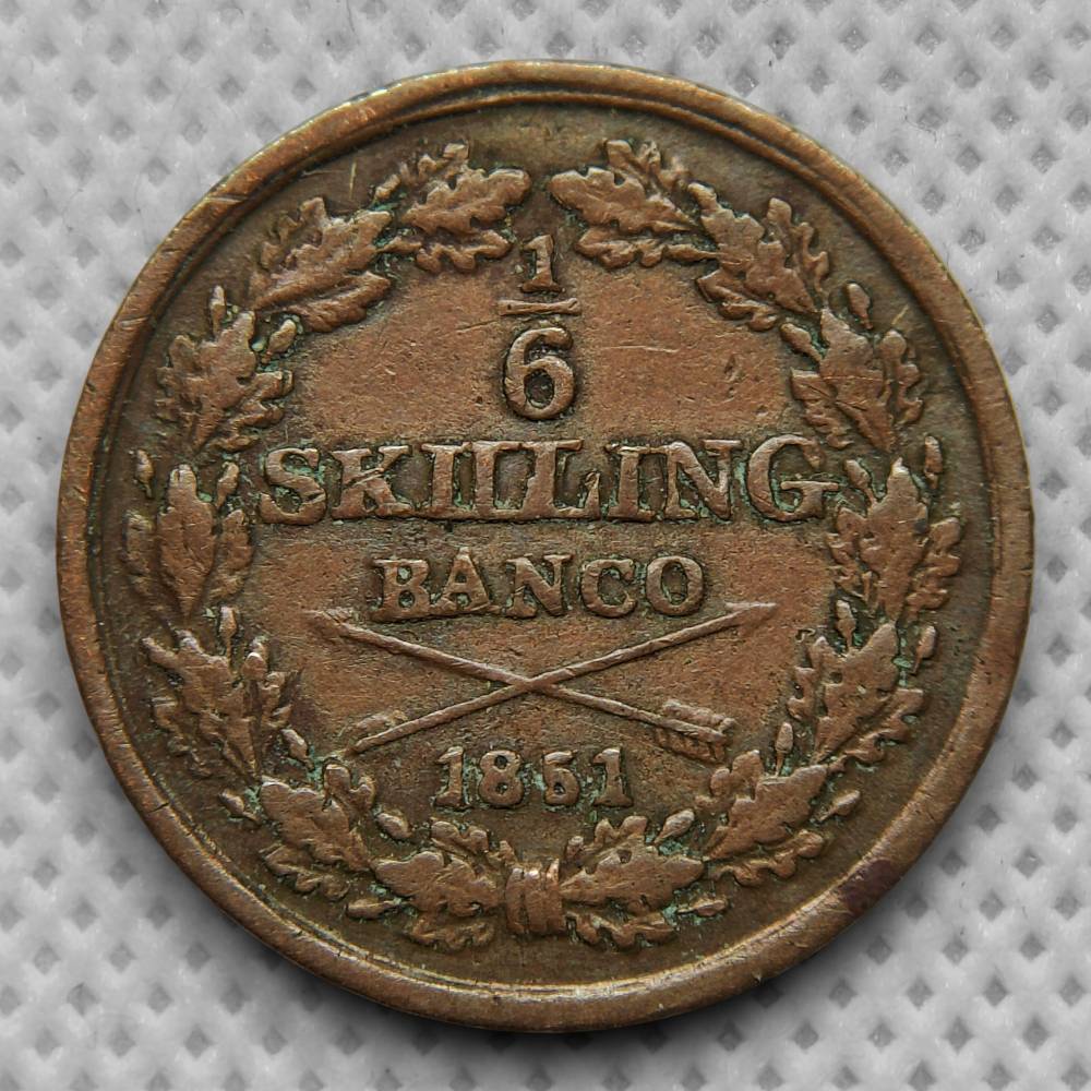 Švedija 1/6 Skilingo 1851