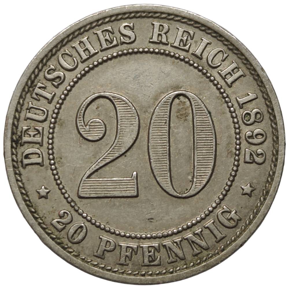 Vokietija 20 pfenigų 1892E